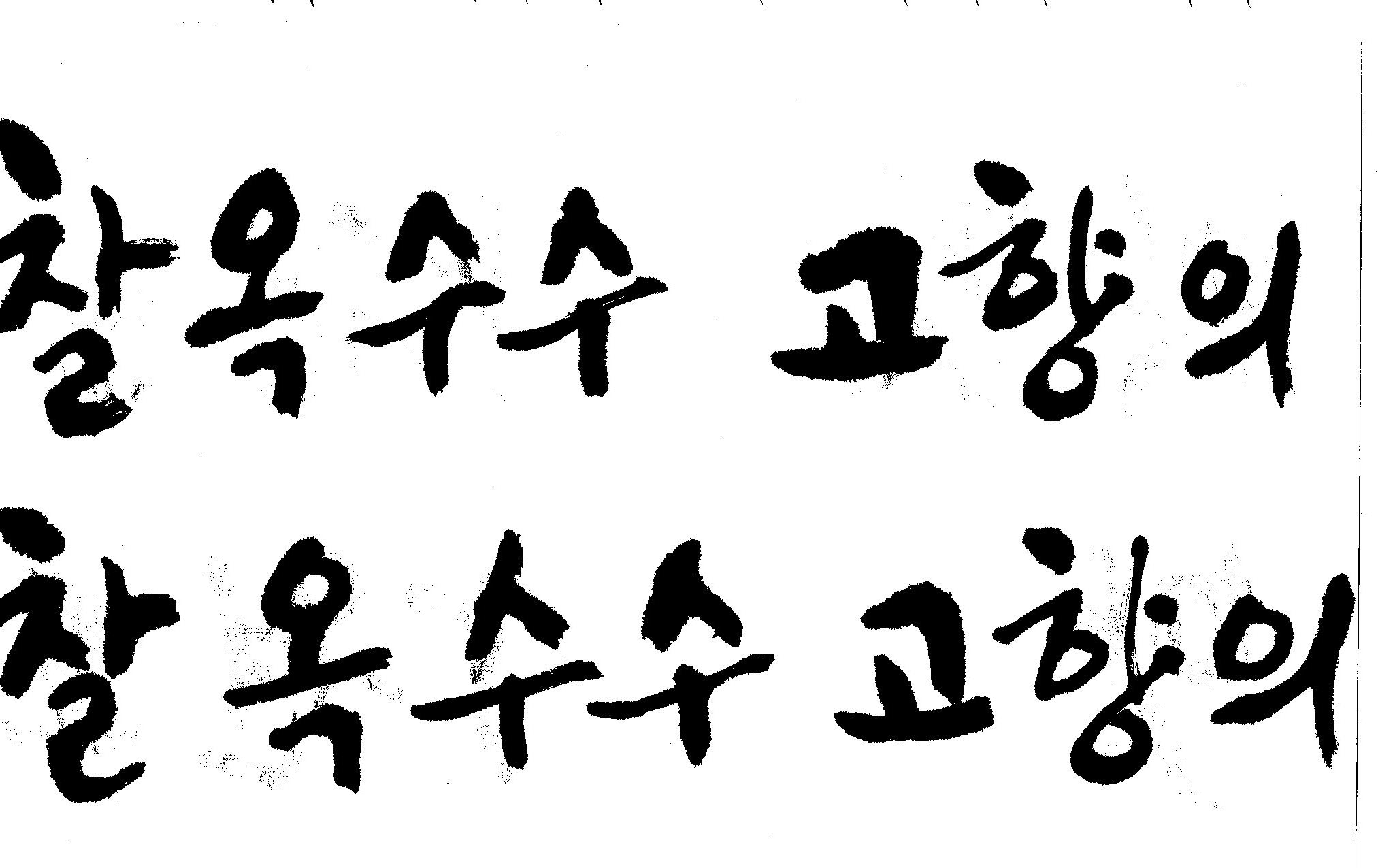 캘리고수님.. 캘리 부탁드립니다. 김철호 일반 1 10549 2008.10.31 15:44 > > 강원도 > 찰옥수수 > 고향의 맛 > > 이상의 문구 입니다. > 캘리 고수님들 시간되시면 도움 부탁드립니다.. > 유용하게 쓰시길 , 스캔이 깨끗하지 못해서 수고 좀 하셔야 겠네요.. "맛"이 라는 글자가 잘 않나와서 따로 올립니다.